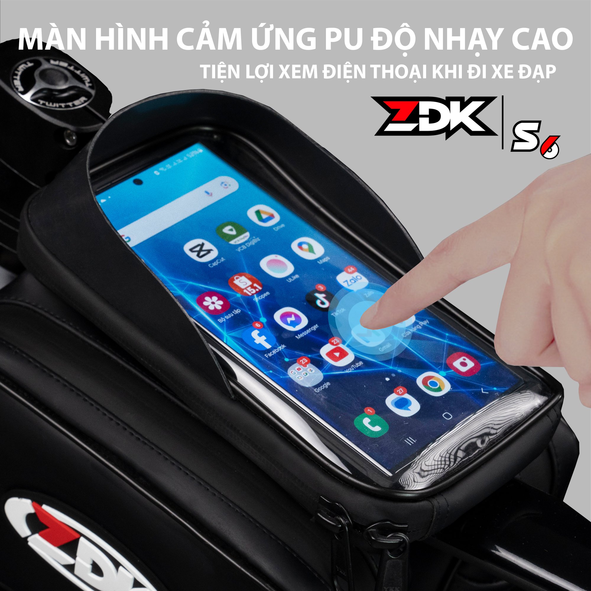 Nếu bạn là một người đam mê xe đạp và thường xuyên tham gia các chuyến đi xa, những cuộc đạp xe ngày dài hay chỉ đơn giản là những buổi tập luyện, thì Túi Treo Sườn Xe Đạp ZDK S6 là một phụ kiện không thể thiếu. Không chỉ giúp bạn dễ dàng mang theo những vật dụng cá nhân cần thiết như điện thoại, ví tiền, chìa khoá, đèn pin, sạc dự phòng mà còn bảo vệ chúng khỏi thời tiết xấu nhờ khả năng kháng nước tuyệt vời. Với thiết kế thông minh, chắc chắn và dễ dàng lắp đặt, túi treo sườn xe giúp bạn di chuyển thuận tiện hơn, không lo vật dụng bị xê dịch hay gặp phải tình trạng khó chịu trong suốt hành trình. Đầu tư vào một chiếc túi treo sườn chất lượng sẽ giúp chuyến đi của bạn thêm thoải mái, an toàn và tràn đầy phong cách. Dưới đây chúng tôi sẽ giới thiệu chi tiết về sản phẩm.