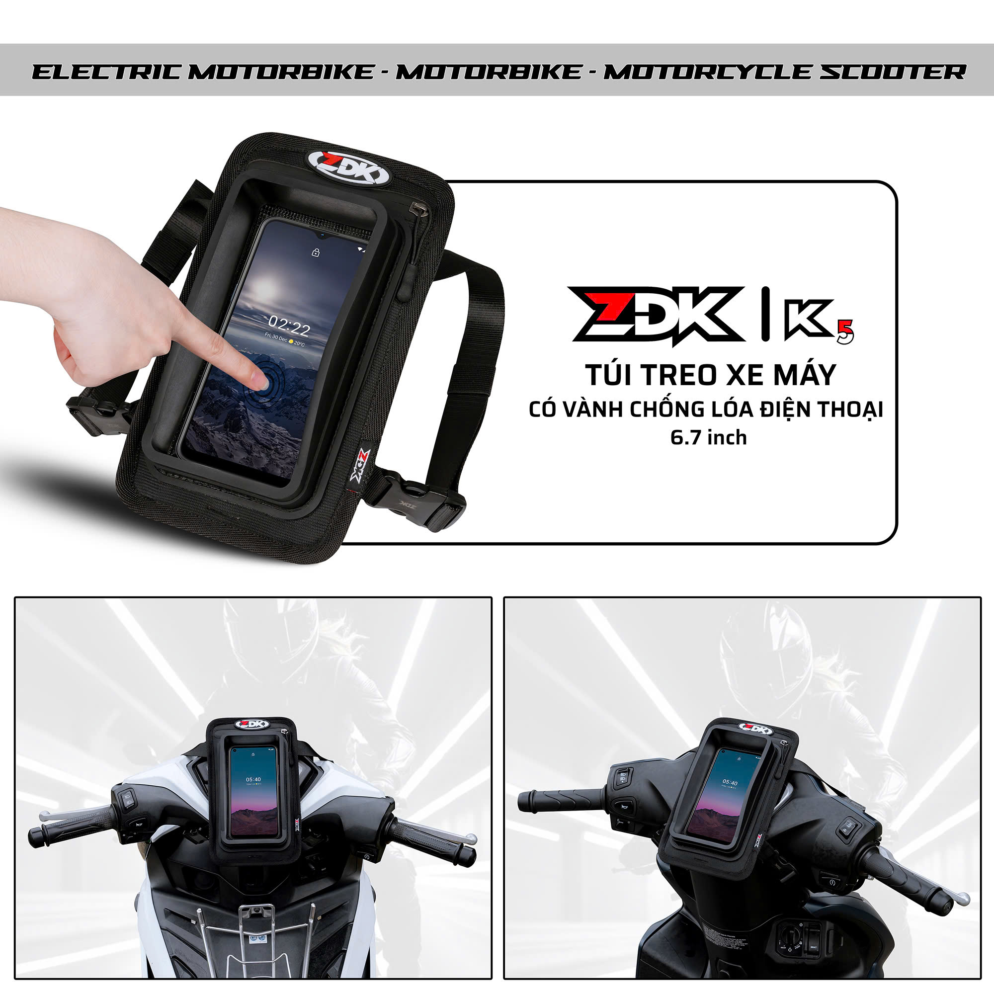Trong cuộc sống hiện đại, việc sử dụng điện thoại thông minh khi di chuyển là điều gần như không thể thiếu. Tuy nhiên, việc bảo vệ chiếc điện thoại khỏi các yếu tố tác động từ môi trường bên ngoài như ánh nắng mặt trời, nước mưa hay va chạm trong quá trình di chuyển luôn là một thách thức. Để giải quyết vấn đề này, công ty SWATVN cho ra mắt túi treo xe máy ZDK K5, đây chính là giải pháp hoàn hảo giúp bạn bảo vệ điện thoại một cách tối ưu, đồng thời mang lại sự tiện lợi khi sử dụng.