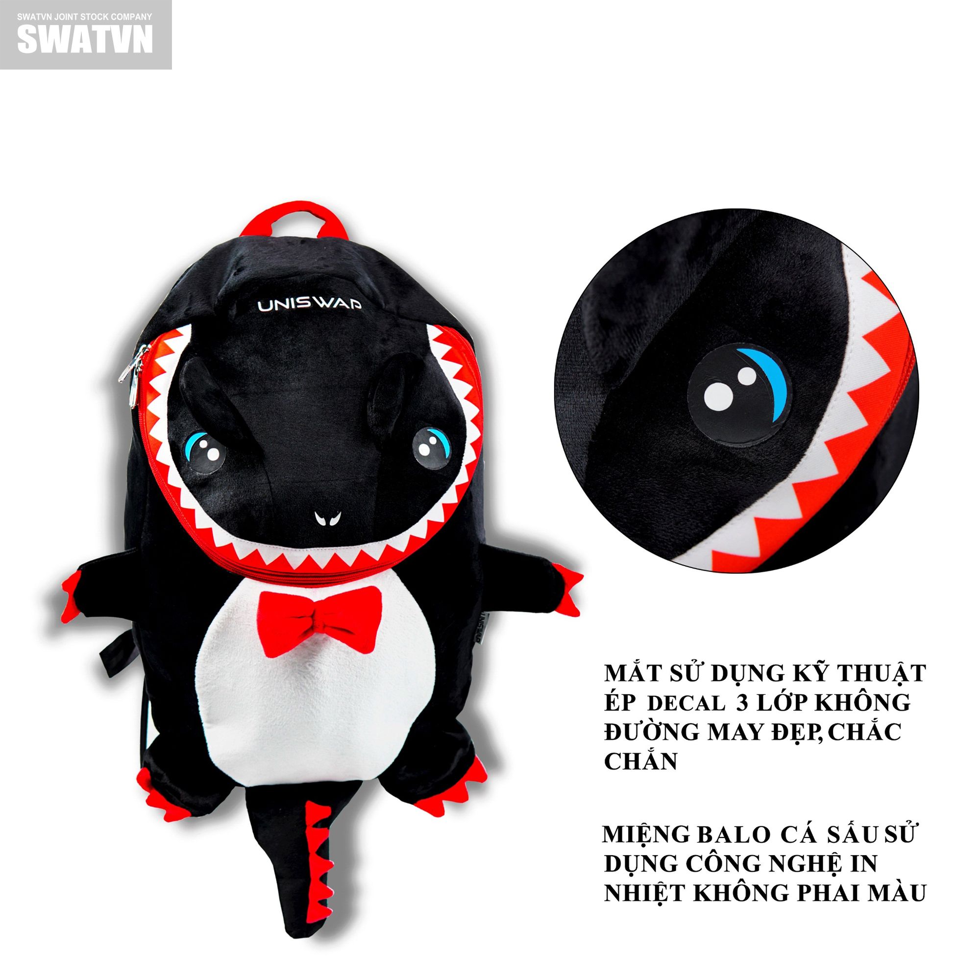 - Chi tiết mắt sắc sảo được in decal cao cấp, không đường may, đẹp, chắc chắn