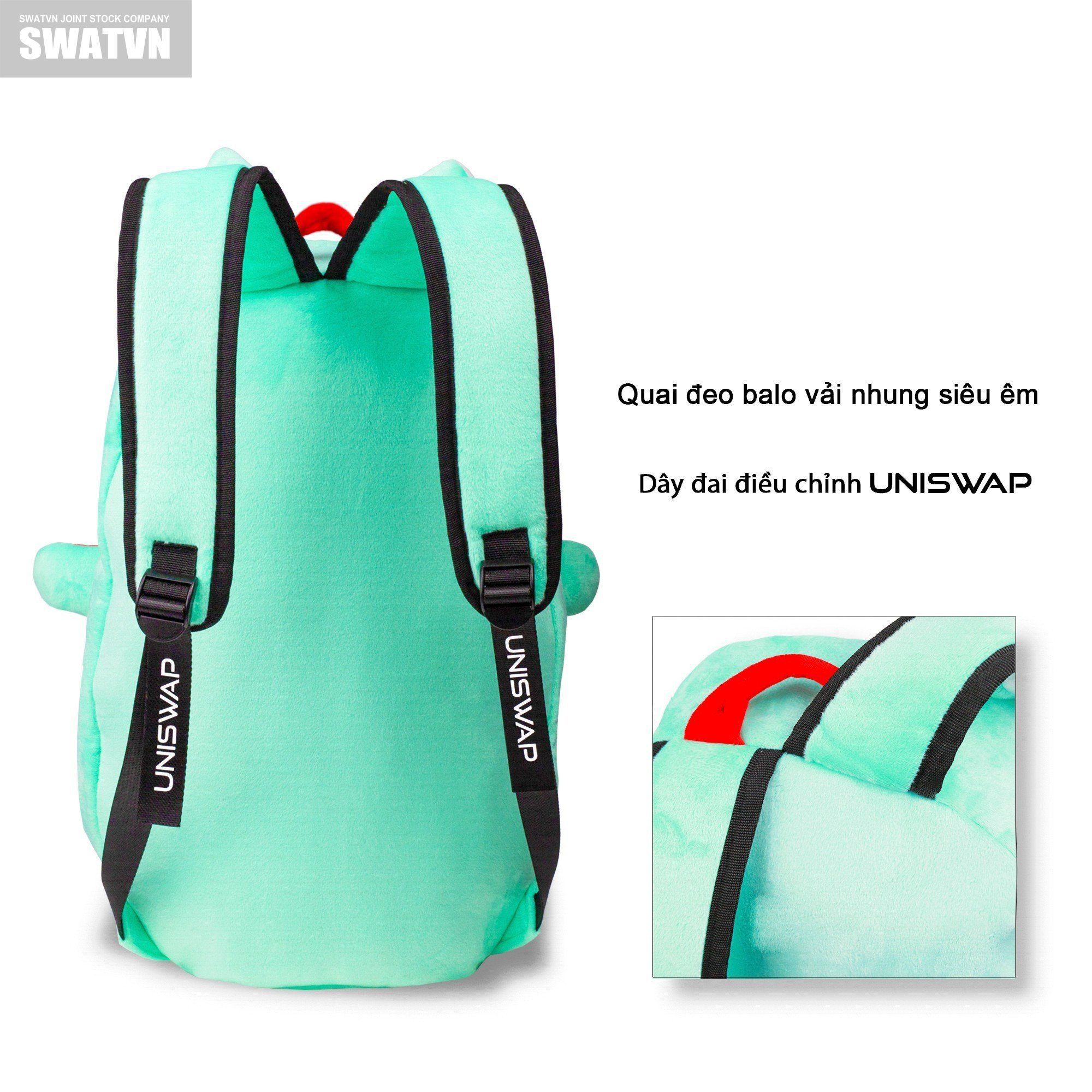 - Quai đeo balo được làm bằng vải nhung siêu êm, mang lại cảm giác dễ chịu khi đeo, dây đai điều chỉnh được làm bằng vải polypropylen cứng cáp, chắc chắc, nổi bật ở dòng chữ UNISWAP sang trọng, bắt mắt