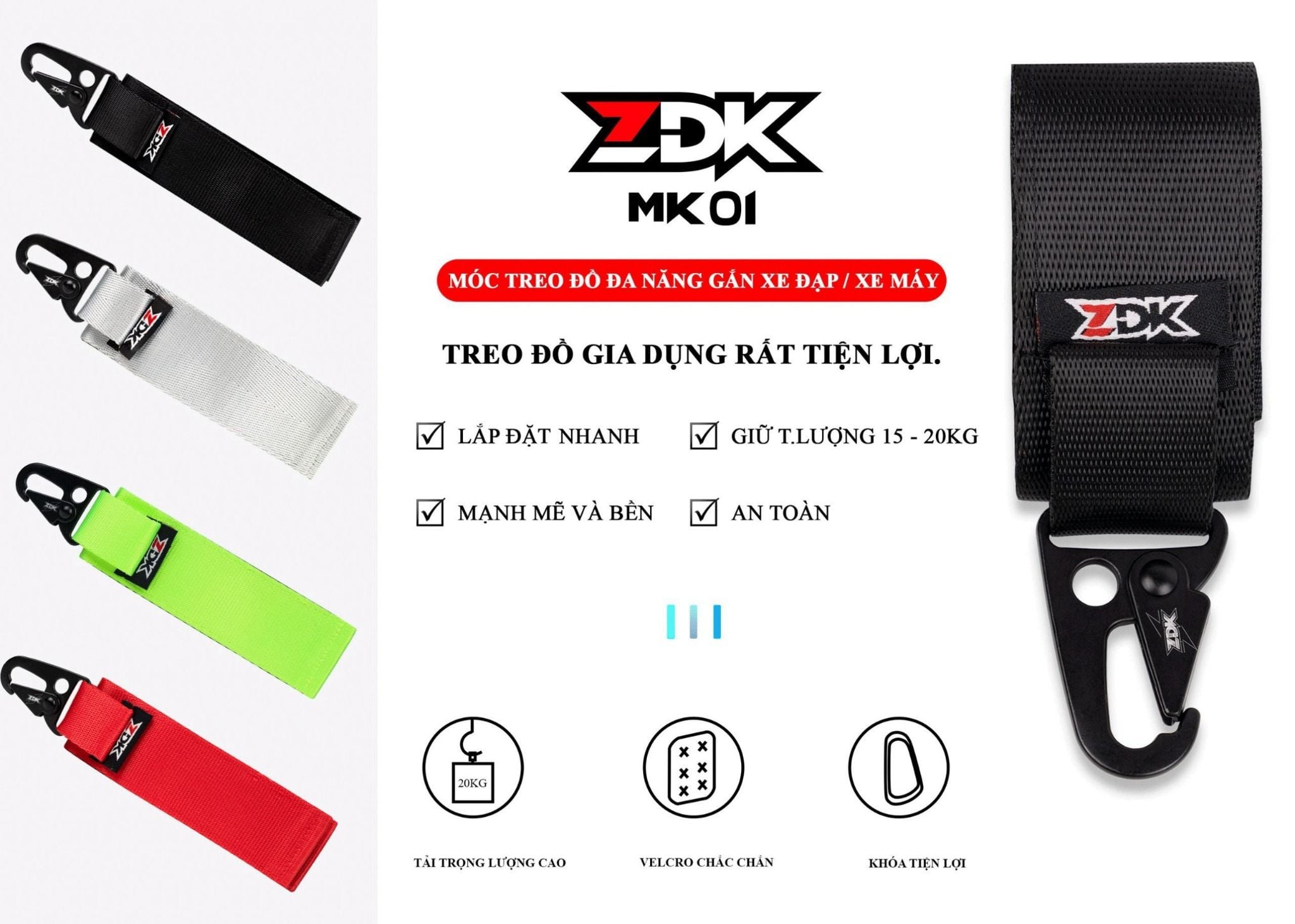 MÓC KHOÁ ĐA NĂNG TREO XE ZDK MK01 - ĐEN